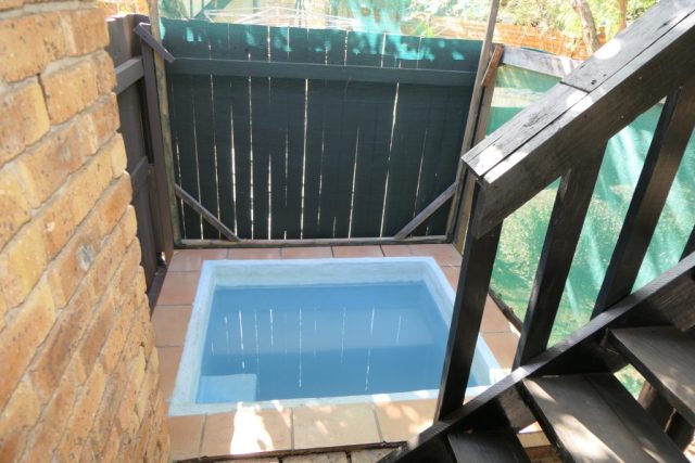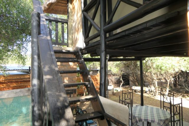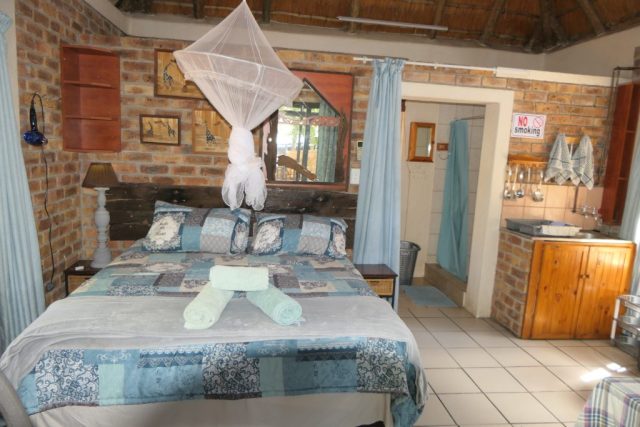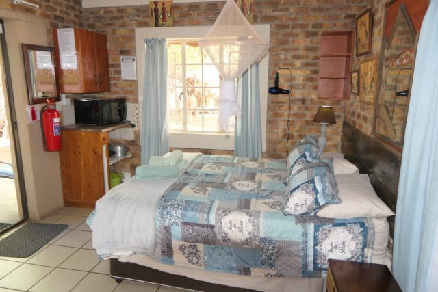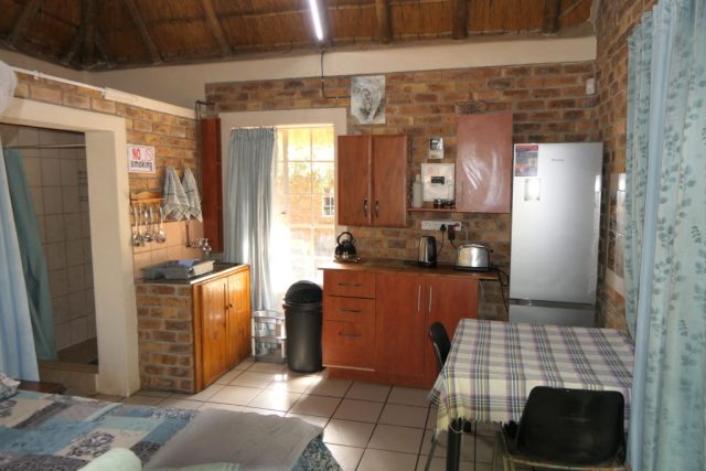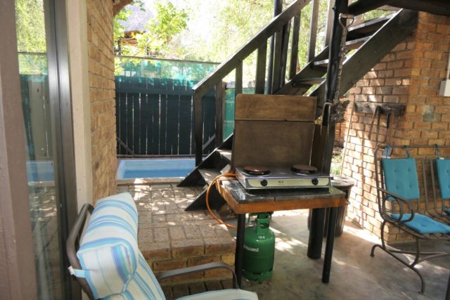 Vlakvark can accommodate up to 5 guests (2 Adults + 3 children recommended), and has 2 bedrooms. The ground floor bedroom contains a queen bed and has a small built-in kitchenette, fully equipped for self-catering with a fridge, two plate gas stove, microwave, cutlery, crockery, beverage making facilities, ceiling fan, please note the air conditioner is on a pre-paid option.